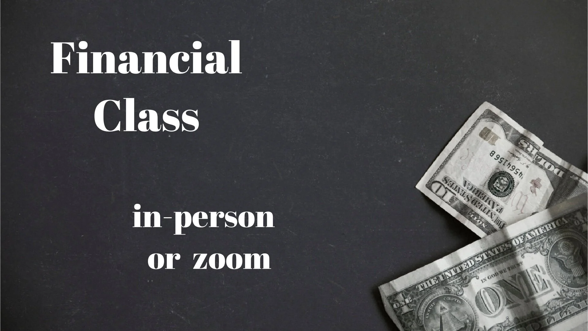 You are invited to attend an online or in-person class and discussion group on Finances.